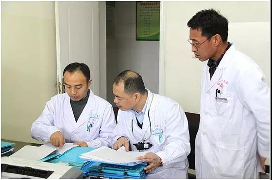 陳偉主任(中)、劉昭升主任(左)探討病歷