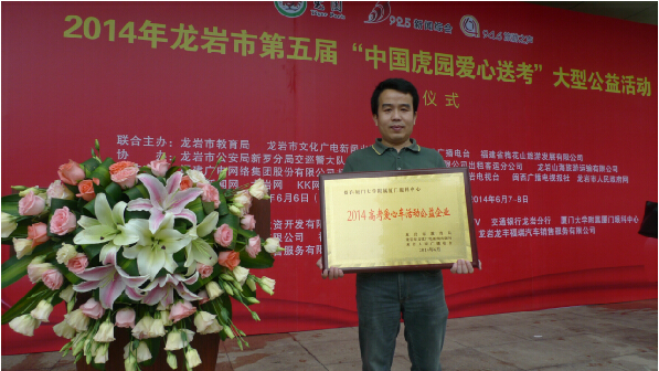 獲頒“2014高考愛心車活動公益企業(yè)”榮譽牌匾