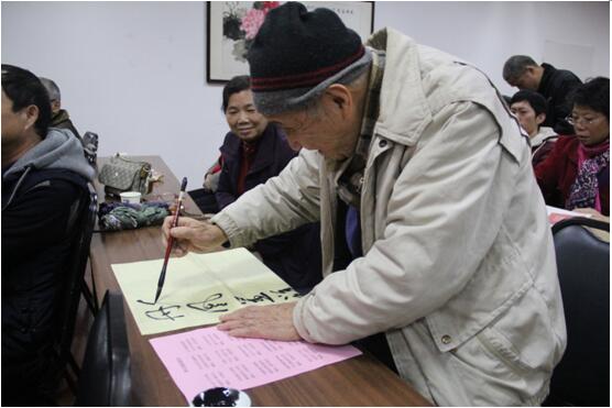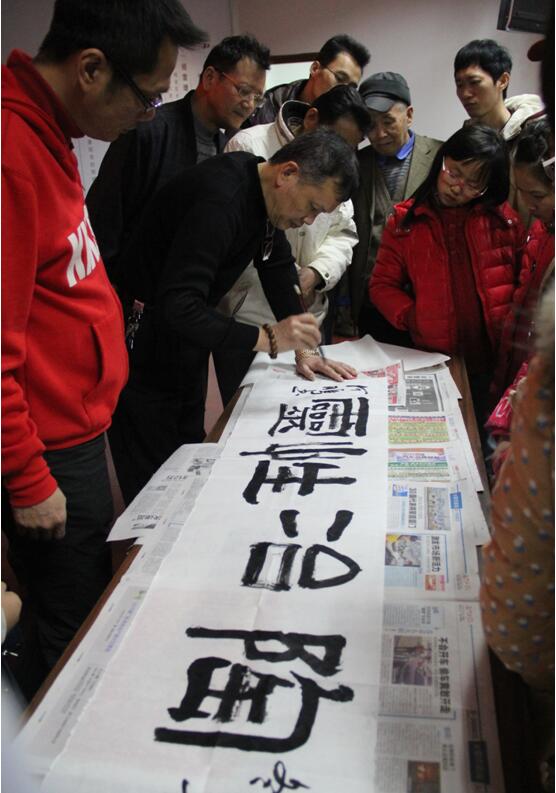 書法家何老師現(xiàn)場(chǎng)揮毫潑墨,大展風(fēng)采,廣大朋友們聚精會(huì)神地學(xué)習(xí)