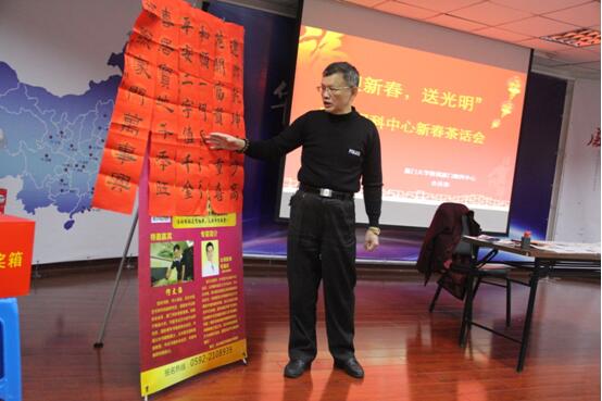 茶話會(huì)現(xiàn)場(chǎng)還特別邀請(qǐng)到廈門書協(xié)常務(wù)理事何文強(qiáng)老師,現(xiàn)場(chǎng)交流書法創(chuàng)作,并指導(dǎo)大家寫春聯(lián)。全場(chǎng)活動(dòng)人數(shù)爆滿,大家都很積極地參與了互動(dòng)。
