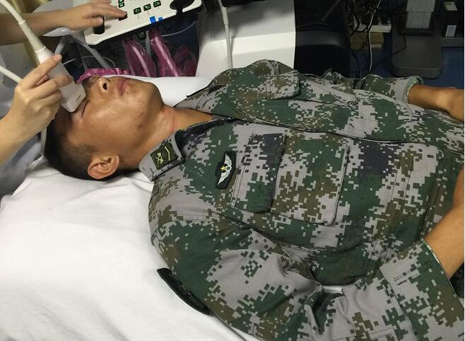 護(hù)士為戰(zhàn)士小王做眼部B超