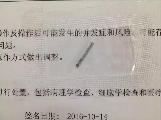當(dāng)天晚上,伍端曉接診后,詳細(xì)檢查后發(fā)現(xiàn)這枚鐵釘已經(jīng)將眼球射穿了,需要馬上手術(shù)取出。在經(jīng)過1個(gè)多小時(shí)的精心手術(shù),伍主任在張師傅的眼里取出了一根約10毫米長的鐵釘!