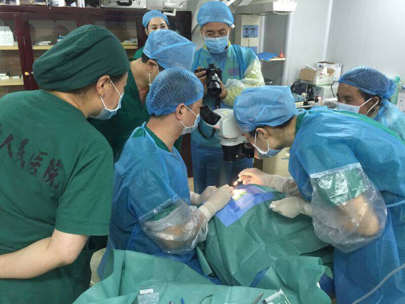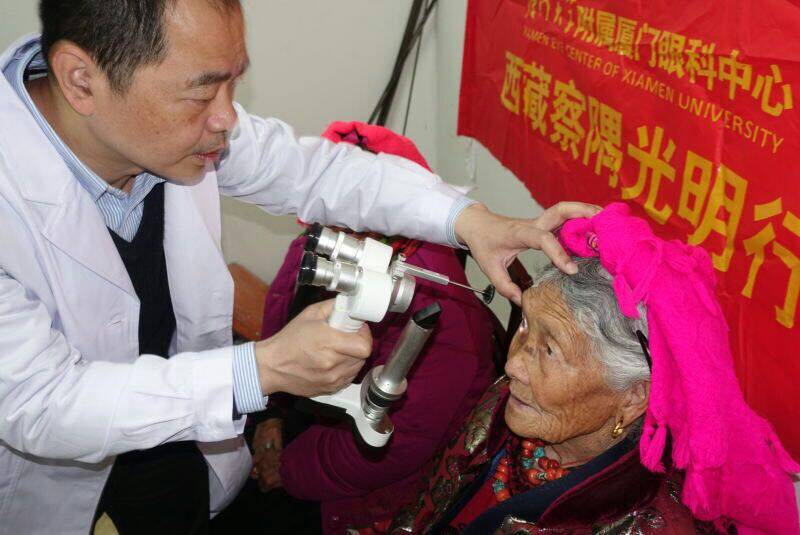 廈門大學(xué)附屬廈門眼科中心白內(nèi)障科副主任陳偉參與了此次“光明行”活動。據(jù)陳偉主任介紹,在“西藏察隅光明行”醫(yī)療隊還未到達(dá)察隅之時,便有藏民抬出 91歲的老奶奶,希望專家能為她檢查眼睛。在當(dāng)?shù)孛刻於寂菰谑中g(shù)室里,中午飯也只能在手術(shù)室旁的一個過道解決。這兒的藏民在手術(shù)后,都是說毛主席萬歲,毛 主席派你們來,太好太好!