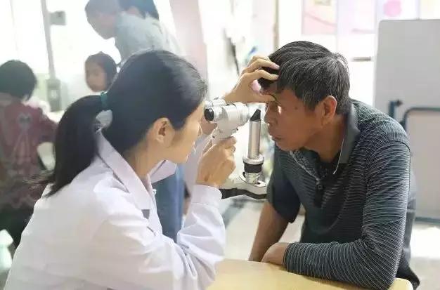 ▲醫(yī)生用裂隙燈為患者檢查眼部情況