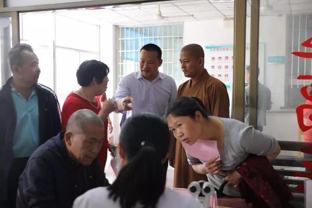▲眼科中心慈善事業(yè)部副總監(jiān)張鴻瑜先生和萬意法師到活動現(xiàn)場了解義診情況