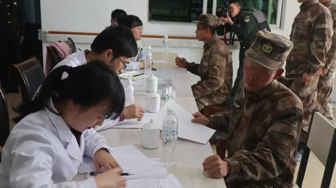 吳護(hù)平副院長(zhǎng)為戰(zhàn)士們做眼部檢查