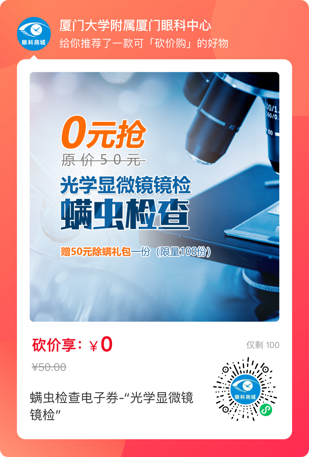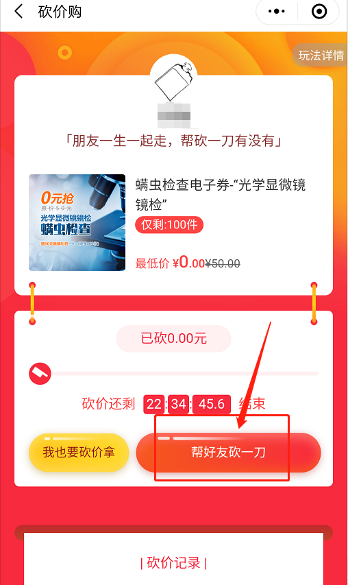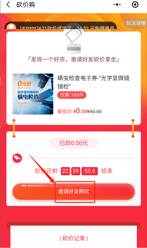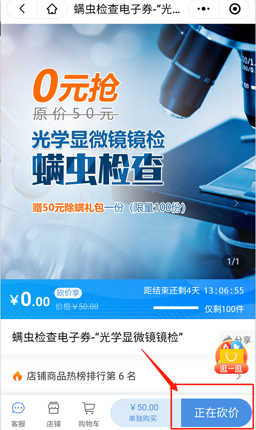 2、邀請(qǐng)10人助力砍價(jià),可0元購(gòu)螨蟲鏡檢