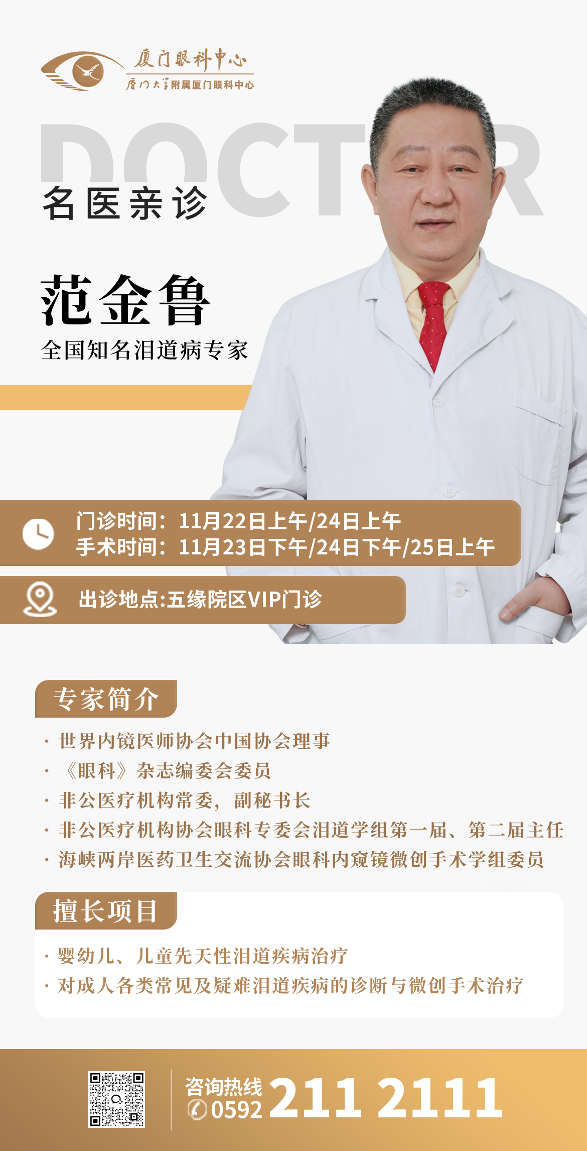 11月22-25日,全國(guó)知名淚道病專家范金魯?shù)綇B親診!預(yù)約從速→