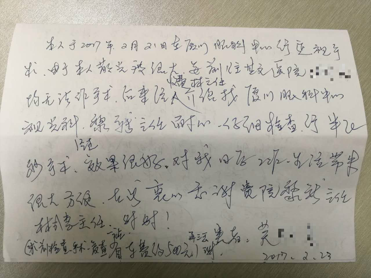 為此,小蔡還特地寫了一封感謝信,表達(dá)自己對(duì)醫(yī)生和工作人員的感激之情!