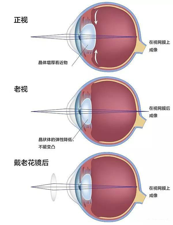 近視患者,年輕時看遠不清楚,看近時不需要或者較少使用眼睛的調節(jié)能力即可看清楚;而他們40歲以后發(fā)生老花時,近視患者由于本身眼球折射力就高于正常,或眼球長于正常,所以近處某特定位置的光線不需要使用調節(jié)能力,即可通過眼球折射,正好聚焦于視網(wǎng)膜上。但是由于人眼調節(jié)能力下降,晶體變凸能力變差,近處物體前后移動時就不能聚焦了,此時同樣需要借助于老花鏡才能聚焦。所以,近視和老花是兩碼事,而且會同時存在,是不能抵消的。