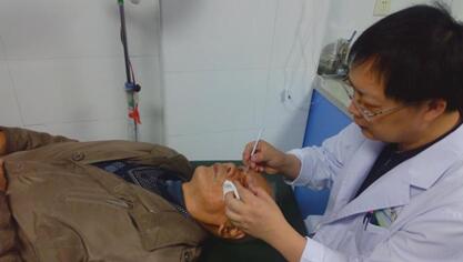 胡主任親自給阿老伯眼瞼注射肉毒素