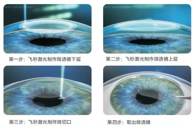 全飛秒SMILE手術(shù)是利用飛秒激光在角膜基質(zhì)內(nèi)不同深度掃描兩次,制作與近視度數(shù)相匹配的一個(gè)薄透鏡,并在透鏡邊緣制作一個(gè)2mm左右的微型切口;將薄透鏡分離并從微型切口取出。