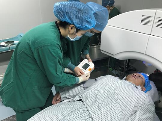 在朋友的介紹下,陳先生來(lái)到廈門眼科中心屈光手術(shù)中心找黎新主任做術(shù)前檢查。了解到他曽有腦溢血病史,在陳先生做完術(shù)前檢查后,黎新主任聯(lián)合內(nèi)科專家、麻醉科專家以及屈光手術(shù)中心的護(hù)理團(tuán)隊(duì)一起進(jìn)行了會(huì)診,會(huì)診后專家們一致認(rèn)為雖然陳先生患過(guò)腦溢血,但目前已經(jīng)治好,而且近年來(lái)血壓控制得當(dāng),以檢查的情況來(lái)看,目前他的血壓控制在120mmHg 85mmHg,屬于正常范圍內(nèi),血壓穩(wěn)定的話通常是可以進(jìn)行近視手術(shù)的。