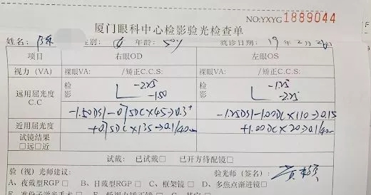 ▲陳女士的術(shù)前驗(yàn)光單