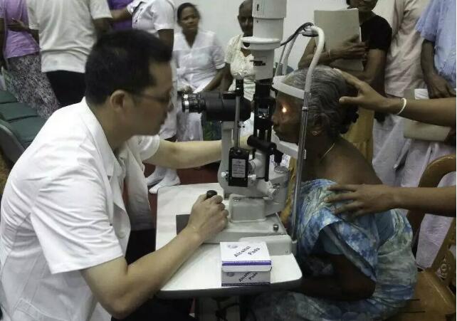 ▲毛祖紅主任為外國友人進(jìn)行白內(nèi)障檢查