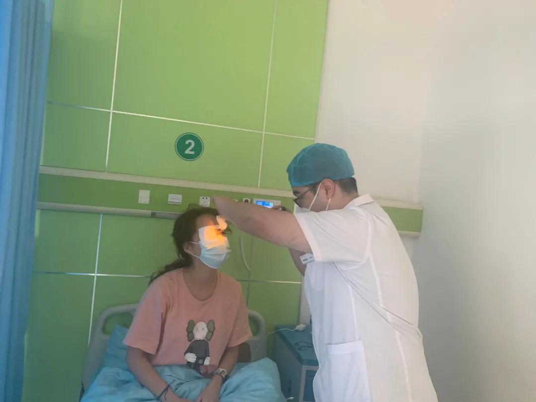 手術(shù)前,小黃事先進(jìn)行了核酸采集,在確認(rèn)核酸檢測(cè)結(jié)果為陰性,并完善相關(guān)術(shù)前檢查后,林志榮博士主刀為其行“紫外線(xiàn)—核黃素角膜交聯(lián)術(shù)”,手術(shù)順利完成。
