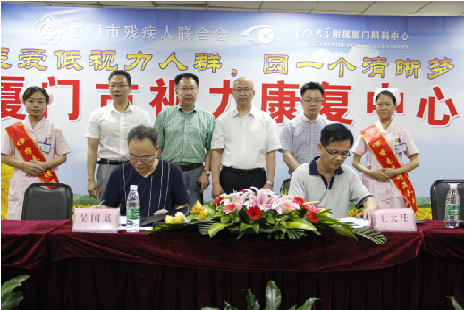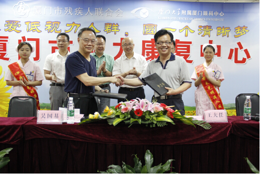 啟動(dòng)儀式后,廈門市殘聯(lián)康復(fù)處處長(zhǎng)王大任與廈門眼科中心業(yè)務(wù)院長(zhǎng)吳國(guó)基代表雙方簽署了活動(dòng)合作協(xié)議書,雙方達(dá)成合作意向。眼科中心隨即開設(shè)低視力門診,低視力患者醫(yī)療救助行動(dòng)立即全面展開。