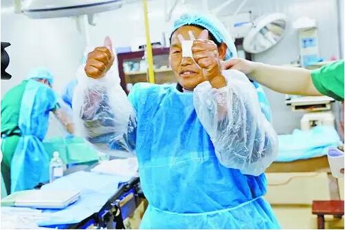 西藏察隅送光明時,藏民在接受白內(nèi)障手術(shù)后,對現(xiàn)場醫(yī)務(wù)人員豎起大拇指表示感謝