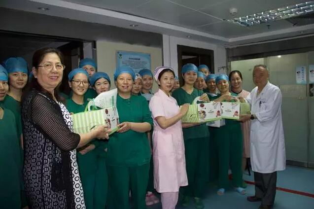 永遠(yuǎn)忙碌的白衣天使,今天依然穿梭于病房、門診、手術(shù)室、消毒室等需要她們的地方。吳國基院長、陳逸恬主題帶上蛋糕、水果,來到每個(gè)樓層為堅(jiān)守崗位的護(hù)士送去慰問、關(guān)心。