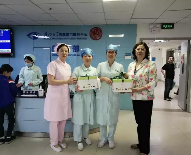 5月12日上午,廈門大學附屬廈門眼科中心工會主席陳逸恬、護理部主任許春麗及華廈眼科集團護理管理中心洪清配業(yè)務副院長一行專程前往各科室,慰問正在臨床一線辛勤工作著的護士,為大家送上節(jié)日蛋糕,送上節(jié)日的問候和祝福。