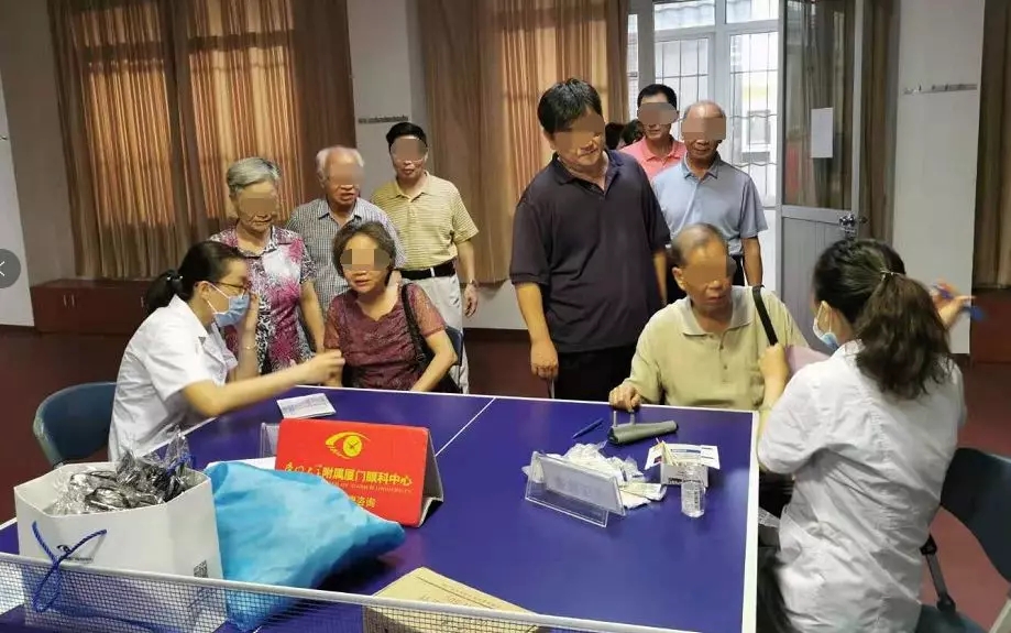 在迎來(lái)中國(guó)人民解放軍建軍92周年之際,廈門(mén)大學(xué)附屬?gòu)B門(mén)眼科中心走進(jìn)思明區(qū)直機(jī)關(guān)離退休聯(lián)合會(huì),為退役軍人、離退休干部檢查眼部健康。