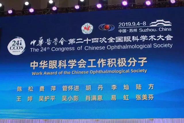 ▲吳護平教授被授予“中華眼科學會工作積極分子”榮譽稱號