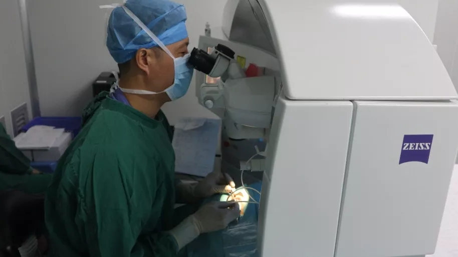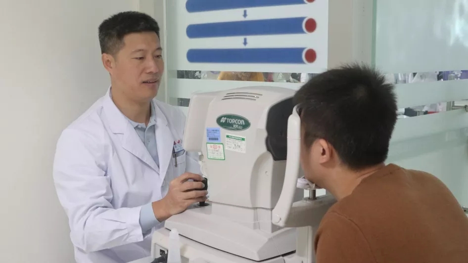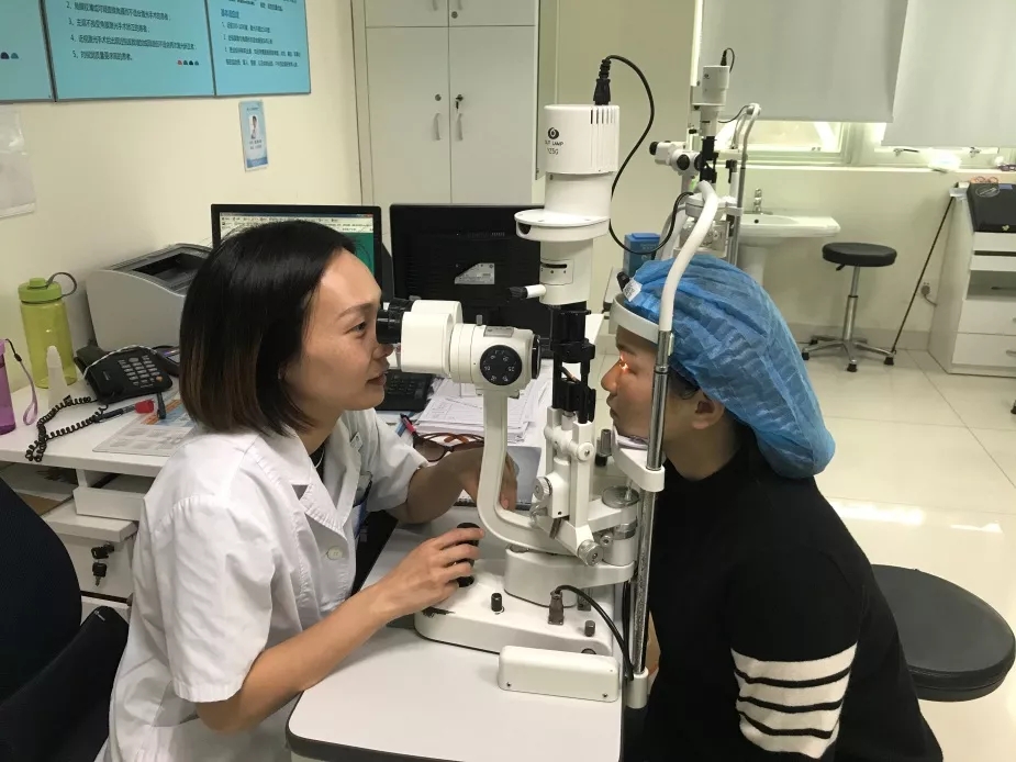 揭黎明主任為摘鏡的醫(yī)生做檢查