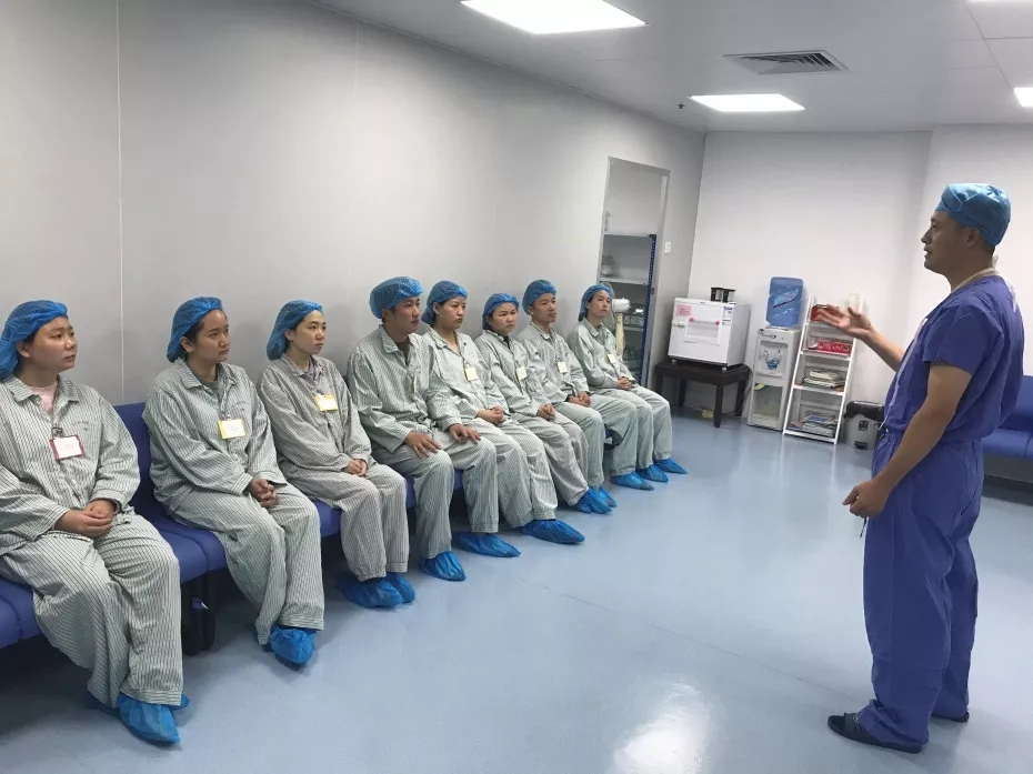 摘鏡的醫(yī)生做完手術(shù)后輪流接受檢查
