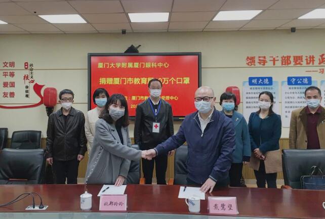 近日,廈門(mén)大學(xué)附屬?gòu)B門(mén)眼科中心向廈門(mén)市紅十字會(huì)捐贈(zèng)了20萬(wàn)只口罩。其中15萬(wàn)只定向捐贈(zèng)給廈門(mén)市教育局及各區(qū)教育局,用于教育系統(tǒng)疫情防控一線。