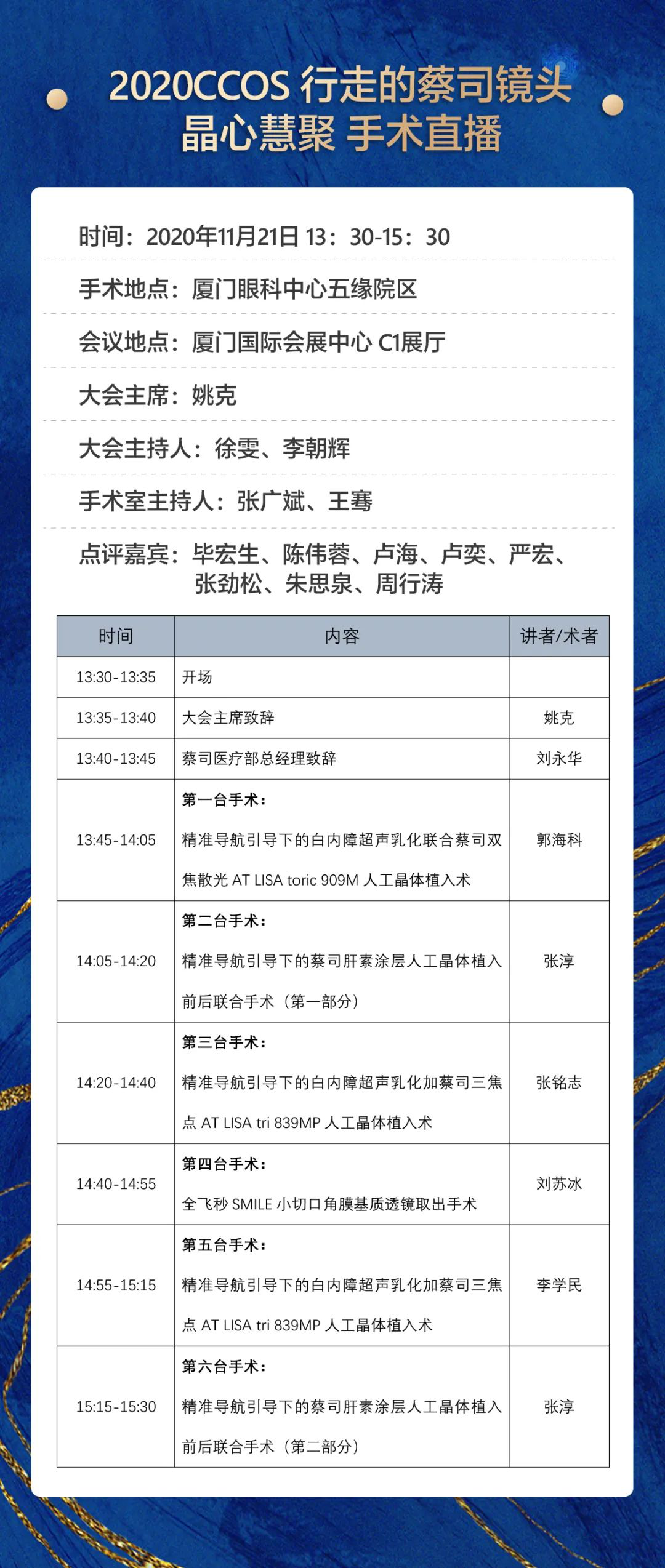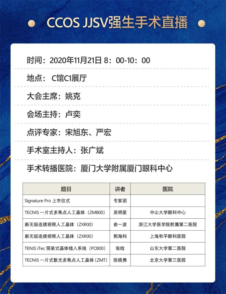 這個(gè)學(xué)術(shù)會(huì)議有點(diǎn)潮!為給廣大眼科臨床工作者打造一個(gè)開(kāi)拓視野、提高技能的實(shí)用型的交流平臺(tái),本屆年會(huì)還精心準(zhǔn)備了手術(shù)直播,涉及白內(nèi)障、屈光、眼底、青光眼等亞??疲膱?chǎng)手術(shù)地點(diǎn)就在廈門眼科中心五緣院區(qū)。