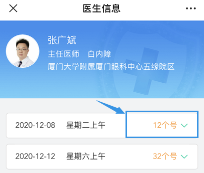 點(diǎn)擊“預(yù)約掛號”,選擇需要預(yù)約院區(qū)(如五緣院區(qū)),搜索或者選擇需要預(yù)約的科室(如白內(nèi)障科),選擇需要預(yù)約的醫(yī)生(如張廣斌醫(yī)生),確認(rèn)預(yù)約時間