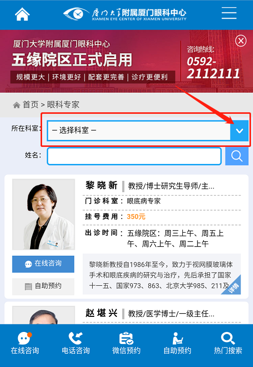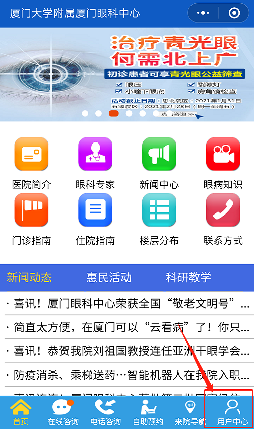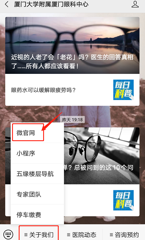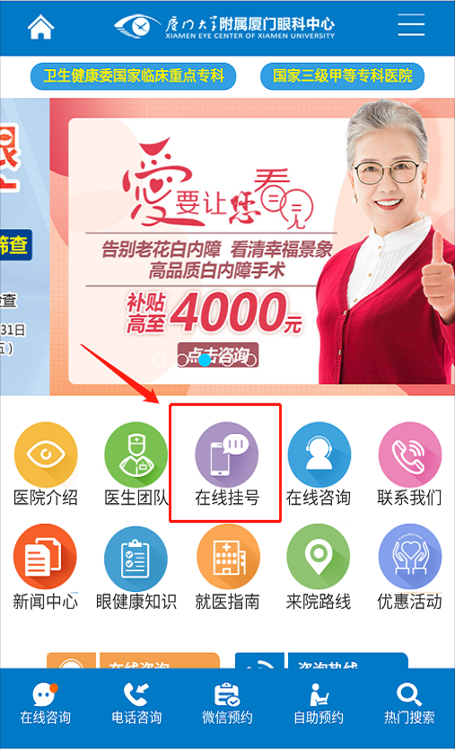 市民可登陸廈門眼科中心官方網(wǎng)站,或在微信公眾號點(diǎn)擊“微官網(wǎng)”進(jìn)行自助預(yù)約。