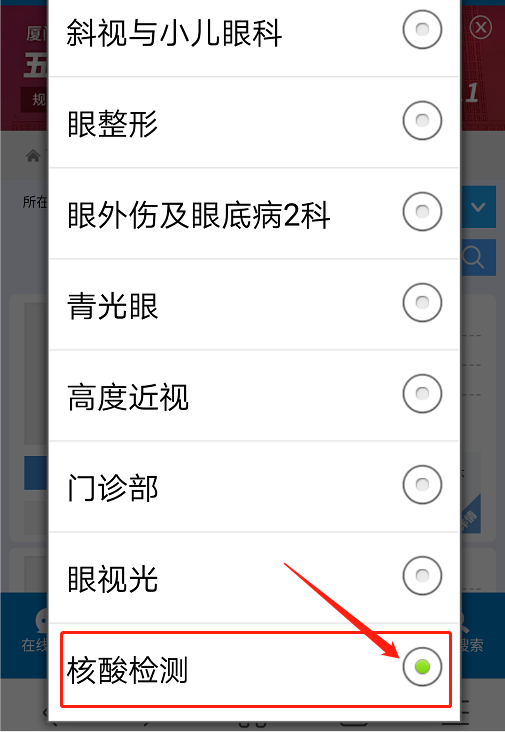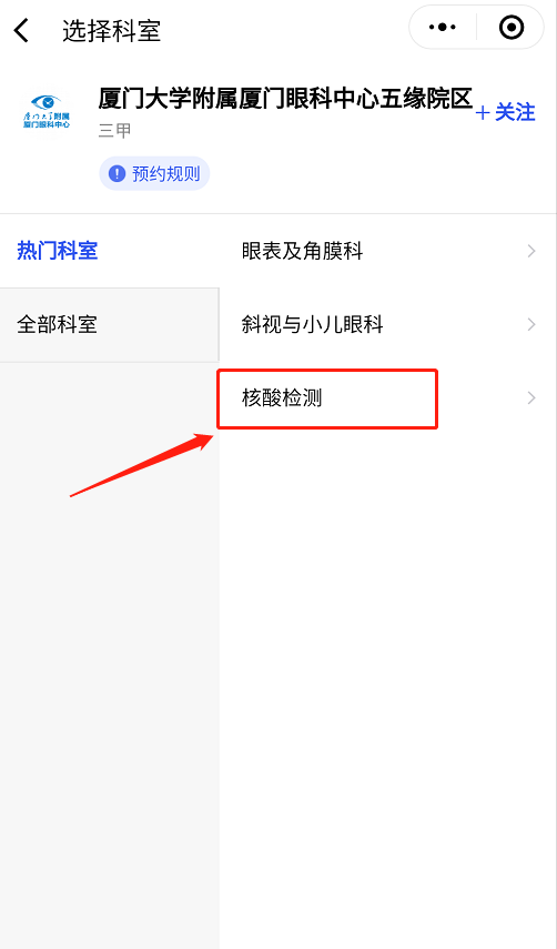 “選擇科室”-“核酸檢測”