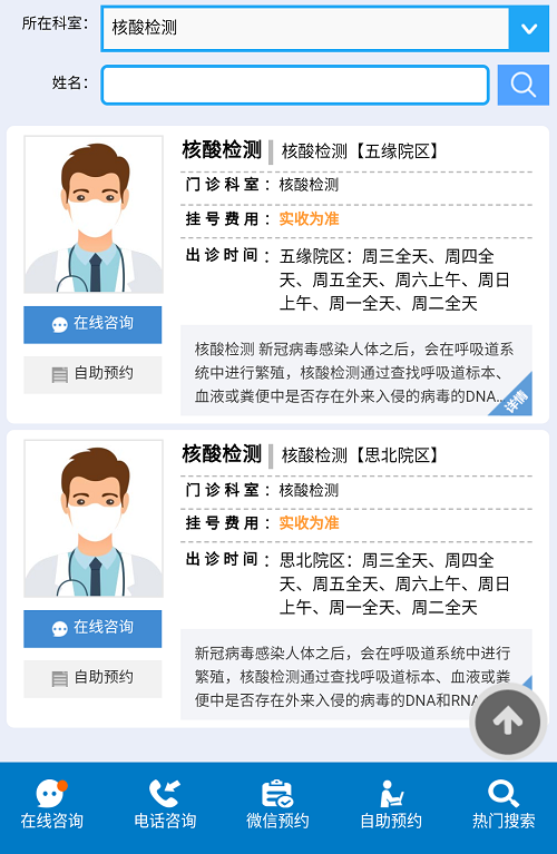 “選擇院區(qū)”-“核酸檢測”