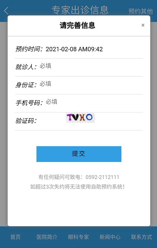 “選擇院區(qū)”-“選擇時間”-“填寫信息”