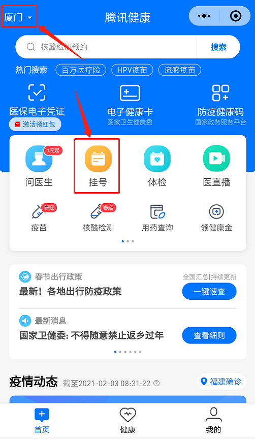 “騰訊掛號領(lǐng)健康分”-“掛號”