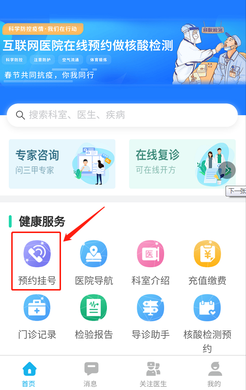 微信搜索“騰訊健康”,或在微信公眾號點(diǎn)擊“健康掛號領(lǐng)健康分”進(jìn)行自助預(yù)約。