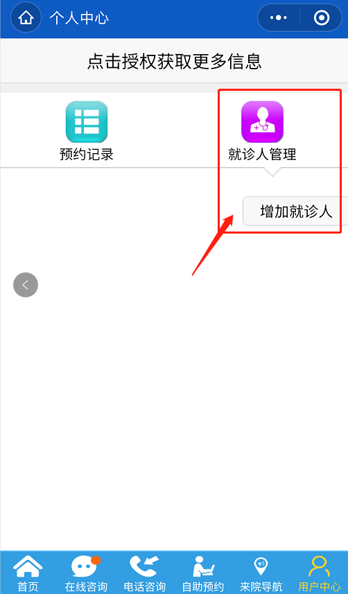 “就診人管理”-“添加信息”-“自助預(yù)約”