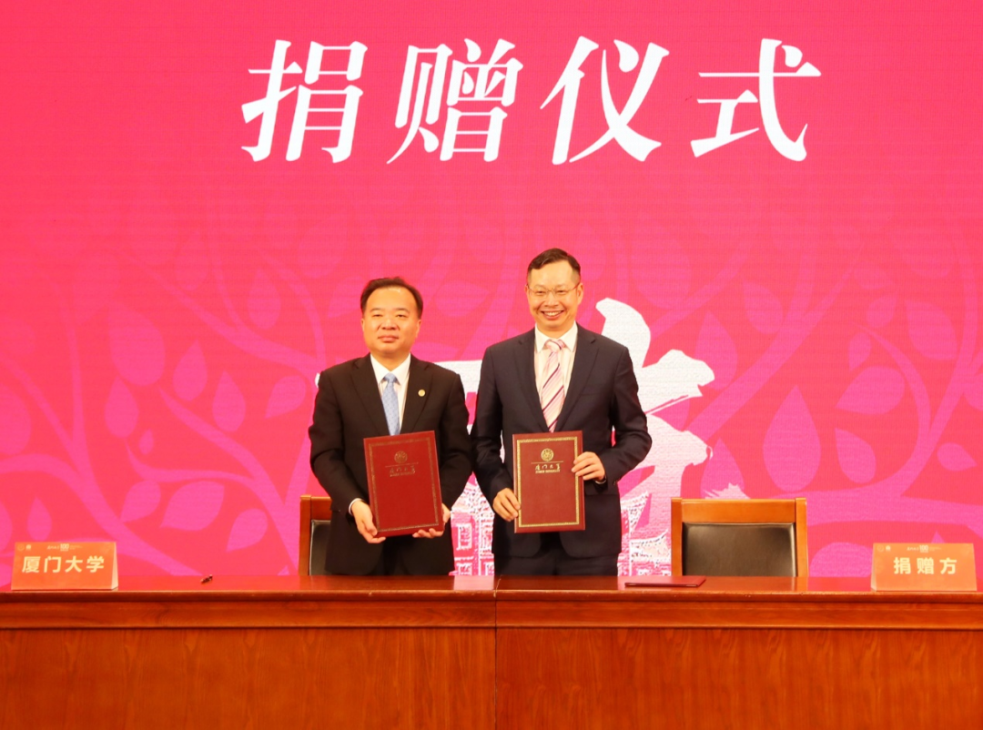 4月5日上午,在廈門大學(xué)建校100周年之“重走嘉庚路,致敬新時(shí)代”主題展覽上,華廈眼科醫(yī)院集團(tuán)蘇慶燦董事長(zhǎng)向廈門大學(xué)捐贈(zèng)1億元。