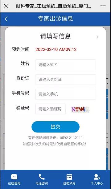 市民可關(guān)注公眾號(hào)“廈門(mén)眼科中心醫(yī)院”,進(jìn)行自助預(yù)約。
