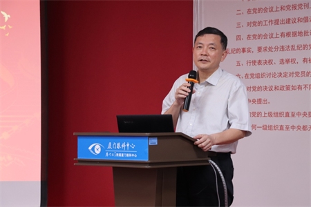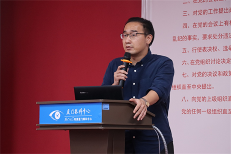 團(tuán)總支換屆選舉大會結(jié)束后,廈門眼科中心全體黨員、團(tuán)員舉行了黨課學(xué)習(xí)以及重溫入黨誓詞活動,劉旭陽書記為在場黨員、團(tuán)員上了一堂別開生面的黨課。