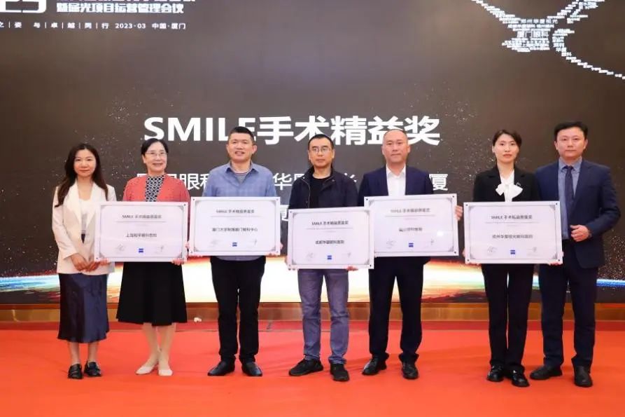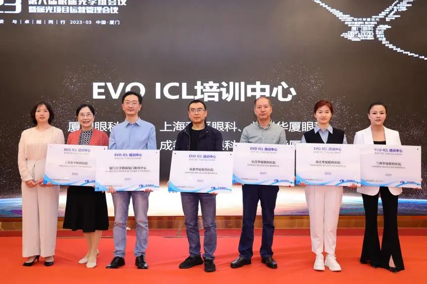 隨后,2022年度眼屈光學(xué)科各類優(yōu)秀獎項進(jìn)行了同步表彰,廈門眼科中心獲得多項殊榮,其中包括“2022年屈光項目特別貢獻(xiàn)獎”、“屈光技術(shù)鼎新獎”、“蔡司屈光手術(shù)培訓(xùn)中心”、“EVO ICL培訓(xùn)中心”、“個性化微飛秒全球認(rèn)證屈光中心”、“SMILE手術(shù)精益獎”、“全飛秒科普貢獻(xiàn)獎”等授牌,屈光手術(shù)中心多位醫(yī)生被授予“EVO ICL手術(shù)質(zhì)量獎”、“EVO ICL手術(shù)質(zhì)量卓越獎” 。