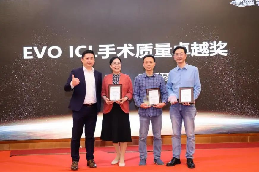 ▲ STAAR Surgical公司區(qū)域銷售經(jīng)理陳矛先生為揭黎明頒發(fā)“EVO ICL手術(shù)質(zhì)量獎”。
