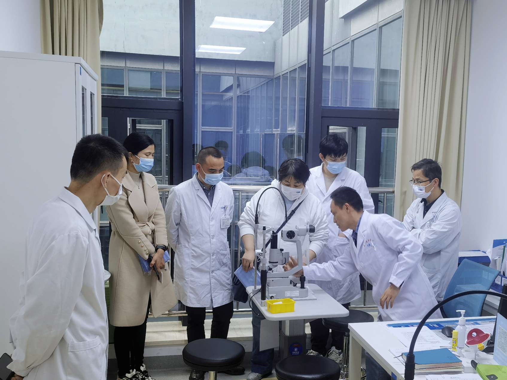 培訓(xùn)第二天,為了讓學(xué)員們對(duì)全飛秒的專(zhuān)業(yè)基礎(chǔ)和手術(shù)技巧進(jìn)行更深入的學(xué)習(xí),除了眼科名師大咖們帶來(lái)的精彩授課外,華廈眼科醫(yī)院集團(tuán)還組織學(xué)員到廈門(mén)眼科中心進(jìn)行 門(mén)診觀摩 ,由鄭林主任為各位學(xué)員示教,講述了全飛秒手術(shù)的術(shù)前檢查流程、如何與患者溝通等。