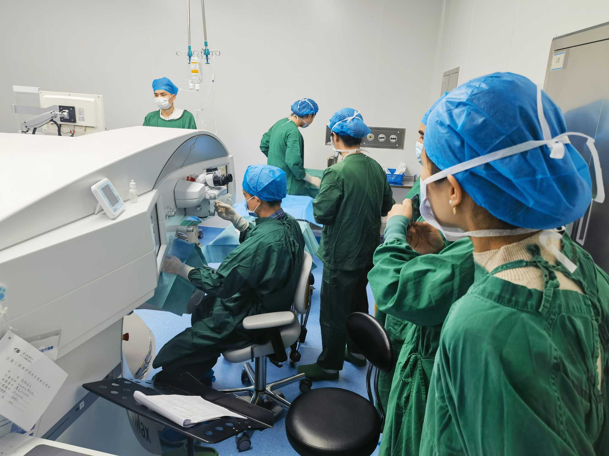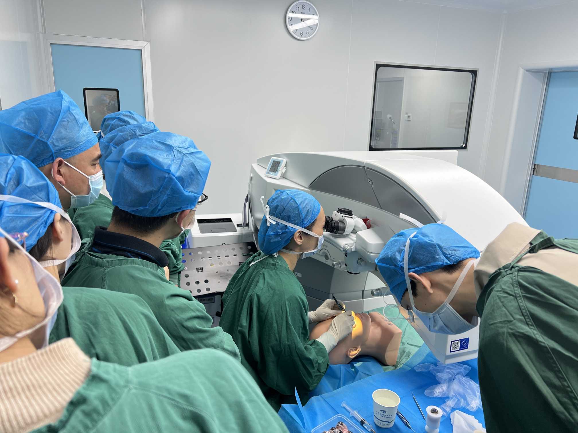 之后,學(xué)員們分組 進(jìn)入手術(shù)室學(xué)習(xí) ,在手術(shù)過(guò)程中,廈門(mén)眼科中心鄭林主任為學(xué)員細(xì)致講解全飛秒手術(shù)的基本技術(shù)要點(diǎn),多角度展示全飛秒手術(shù)的操作技巧,讓學(xué)員們能夠更加清晰及直觀地近距離學(xué)習(xí)全飛秒手術(shù),獲得更好的學(xué)習(xí)體驗(yàn)。
