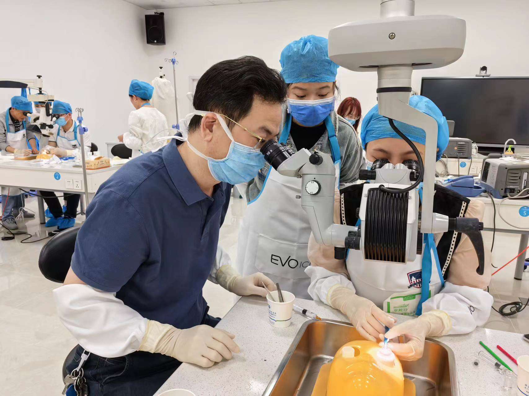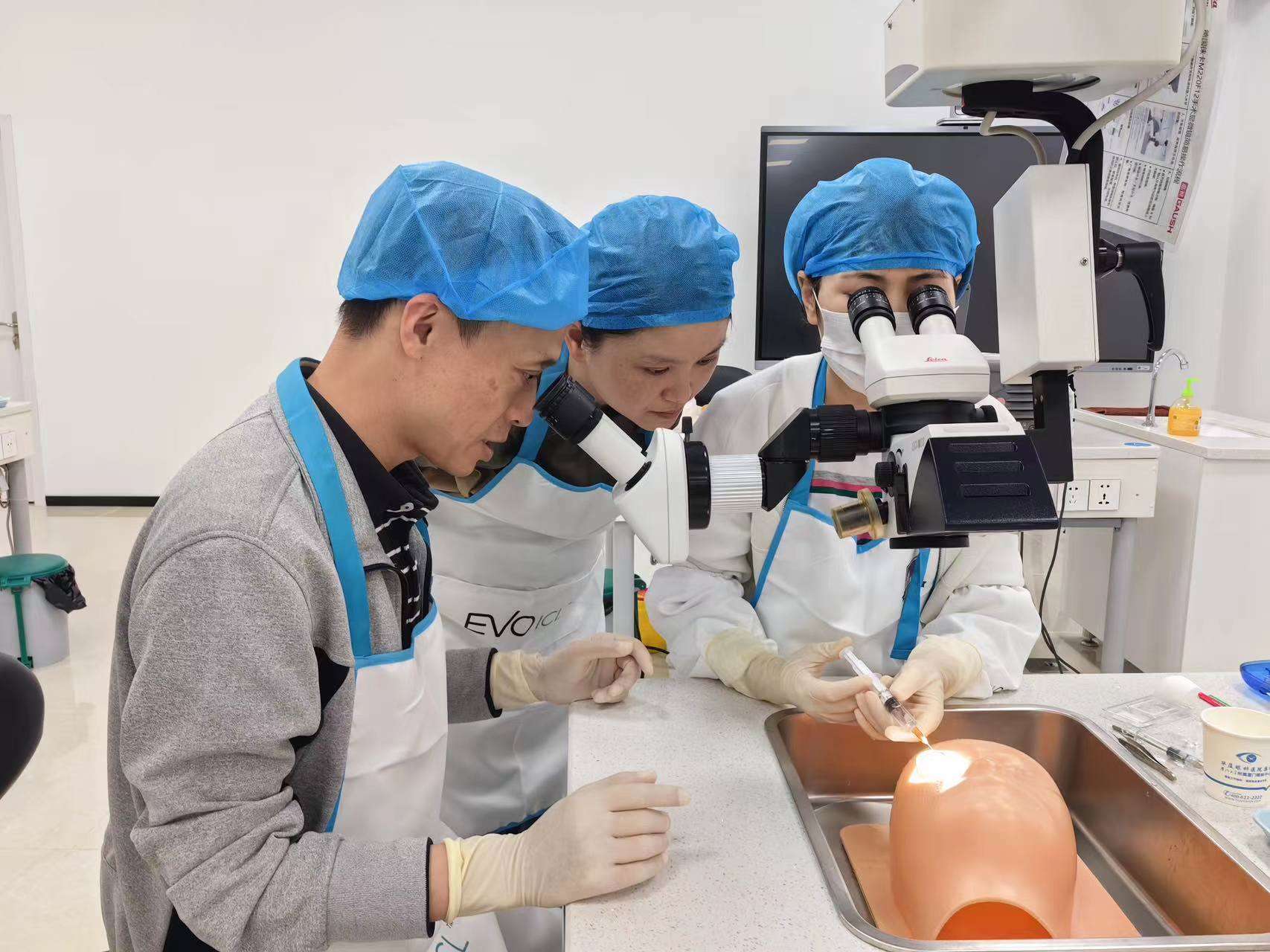 手術(shù)觀摩環(huán)節(jié),劉才遠教授、鄭林主任對學(xué)員們進行一對一手術(shù)技巧的帶教操作指導(dǎo)。他們不僅是國內(nèi)為數(shù)不多ICL手術(shù)經(jīng)驗豐富的專家,還是各地ICL手術(shù)醫(yī)生的帶教、培養(yǎng)及考核導(dǎo)師。