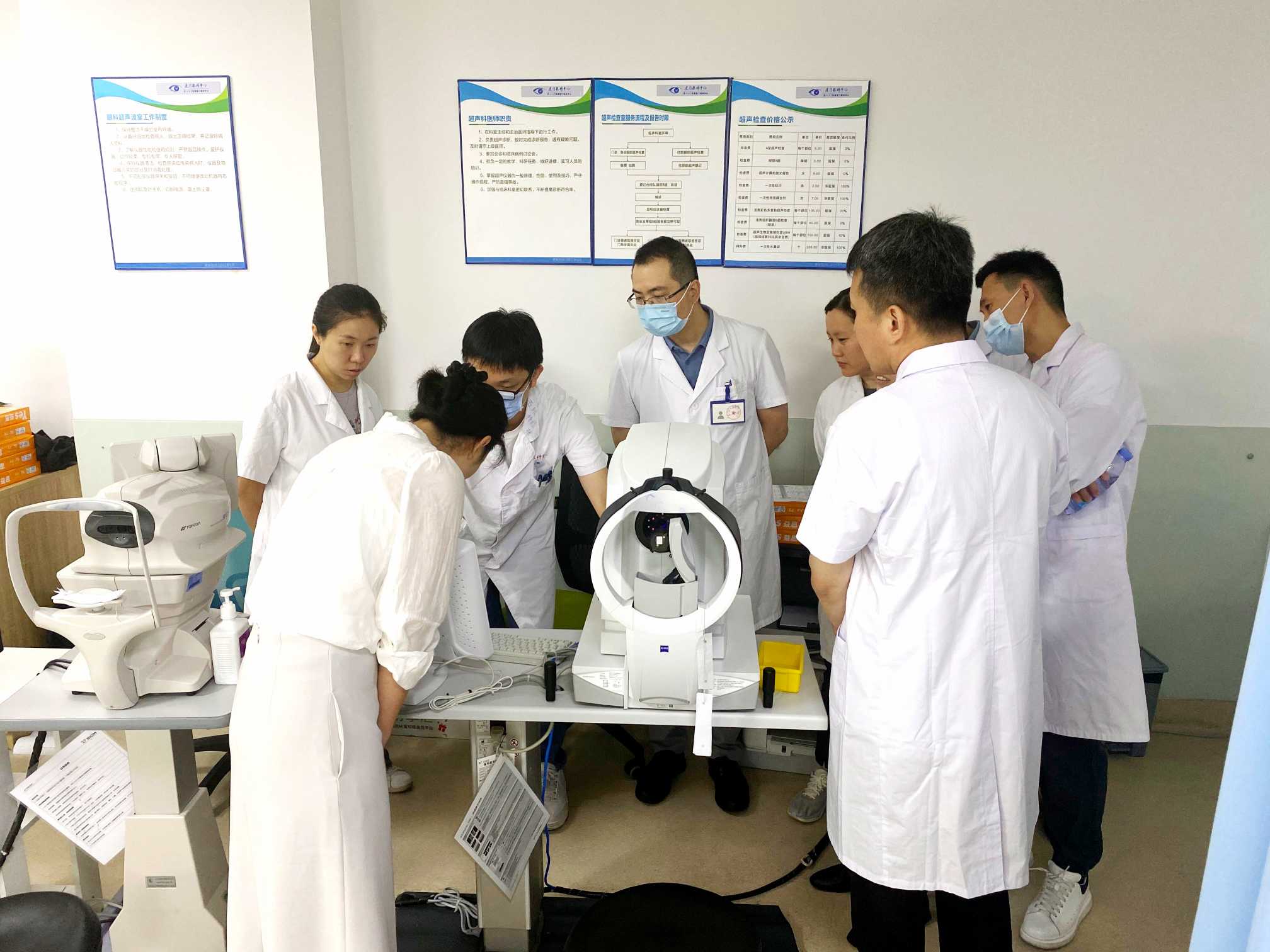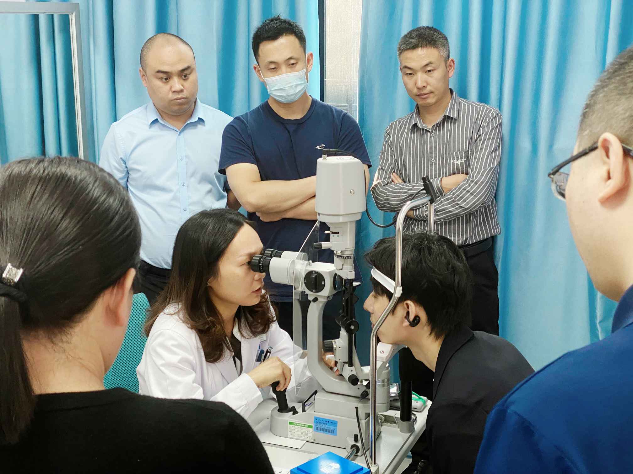 鞏固理論基礎(chǔ)之余,廈門眼科中心還組織參培醫(yī)師們到 門診觀摩 ,實(shí)地了解和學(xué)習(xí)ICL術(shù)前檢查和術(shù)后觀察處理流程,由史小玲主任為大家釋疑。