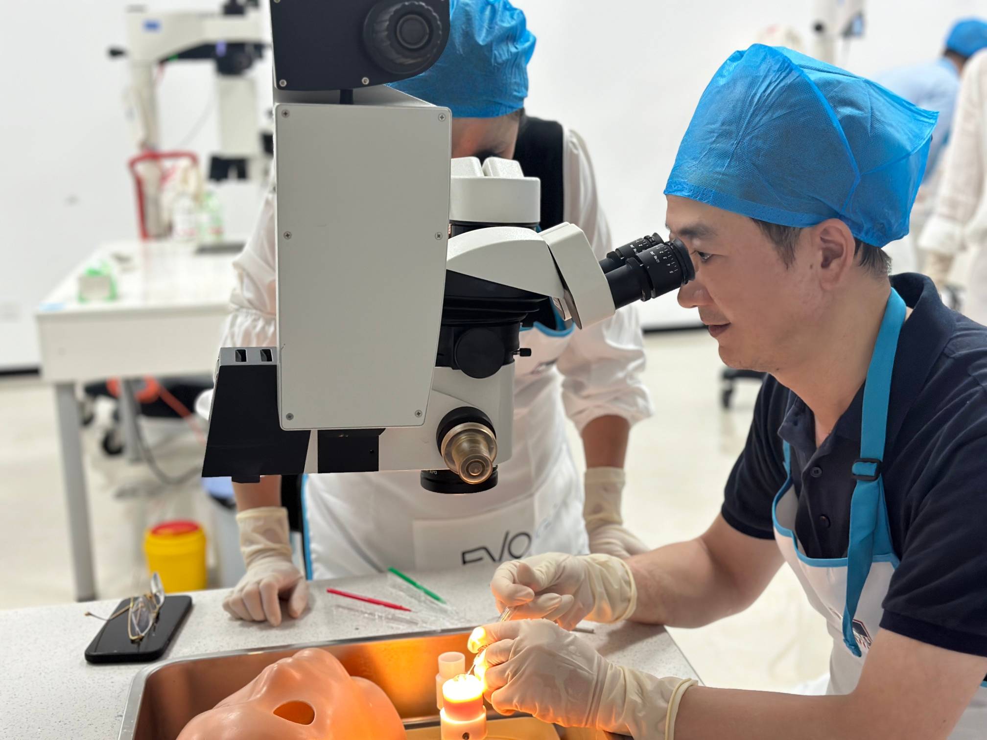 臨床操作實(shí)驗(yàn)室內(nèi),參培醫(yī)師們進(jìn)行了Wetlab動(dòng)物眼實(shí)操練習(xí) 。
