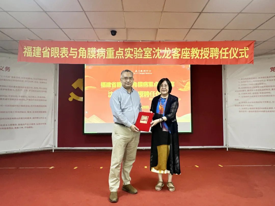 8月28日下午,沈龍教授聘任儀式在廈門眼科中心思北院區(qū)舉行。之后,作為福建省眼表與角膜病重點實驗室客座教授,沈龍教授將協(xié)助廈門眼科中心眼表與角膜病中心專家團隊推進眼表與角膜病領(lǐng)域科研項目的開展,通過國內(nèi)外學(xué)術(shù)交流與協(xié)作,加速學(xué)科臨床科研水平的提升和科研成果的轉(zhuǎn)化、應(yīng)用。