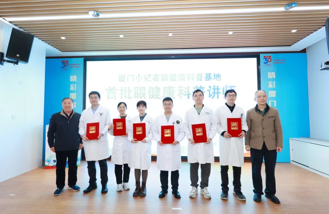 現(xiàn)場,何雪洪、李海波、胡欽瑞、王炎子、曾玲燕、林元耀等6名常年奮戰(zhàn)在廈門眼科中心臨床診療一線的優(yōu)秀醫(yī)生,受聘成為廈門小記者眼健康科普基地首批眼健康科普講師。未來,他們將發(fā)揮各自專長,進(jìn)校園開展眼健康科普行動(dòng),讓更多青少年了解愛眼護(hù)眼常識(shí)。